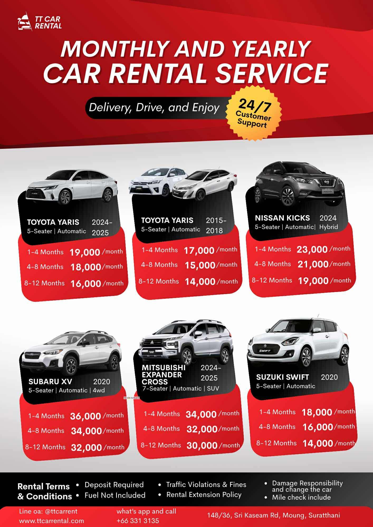 Long plan rental with the best offer, quick more information contact us at WhatsApp or Line OA